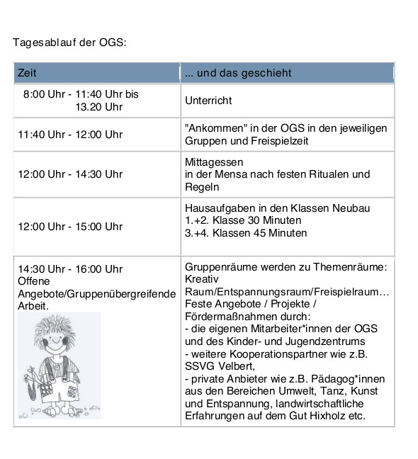 Der Ganztag (OGS) ist eine Maßnahme der Stadt Velbert bzw. der Grundschule Birth.
