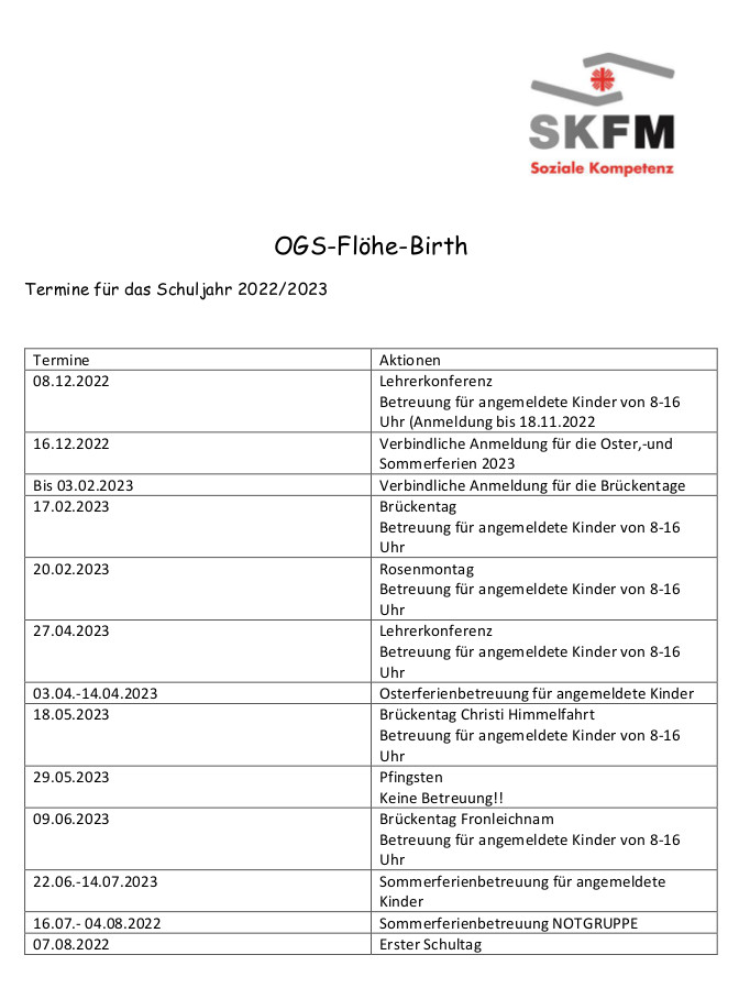 Hier erfahren Sie alles Wissenswerte in Kurzform über die OGS - Flöhe Birth.